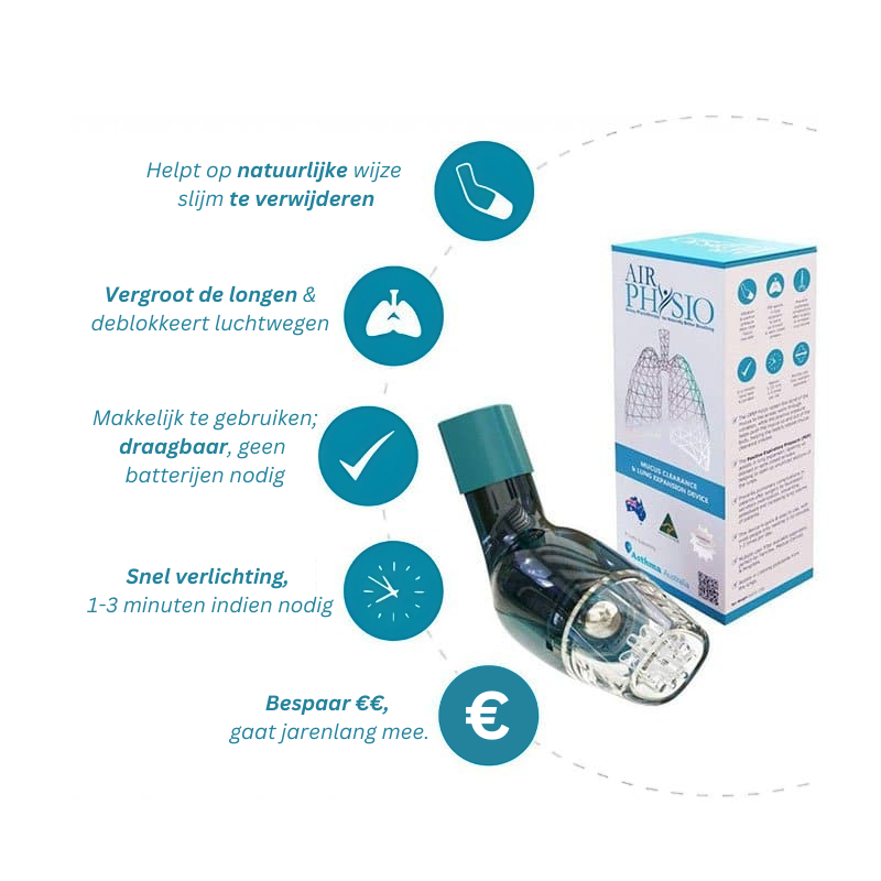 AirPhysioโข biedt een veilige, natuurlijke oplossing voor ademhalingsproblemen. Zonder afhankelijk te zijn van medicijnen, is het je dagelijkse metgezel voor een gezonder ademhalingssysteem.